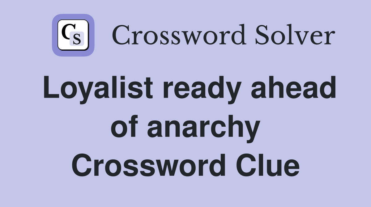 Loyalist ready ahead of anarchy Crossword Clue Answers Crossword Solver