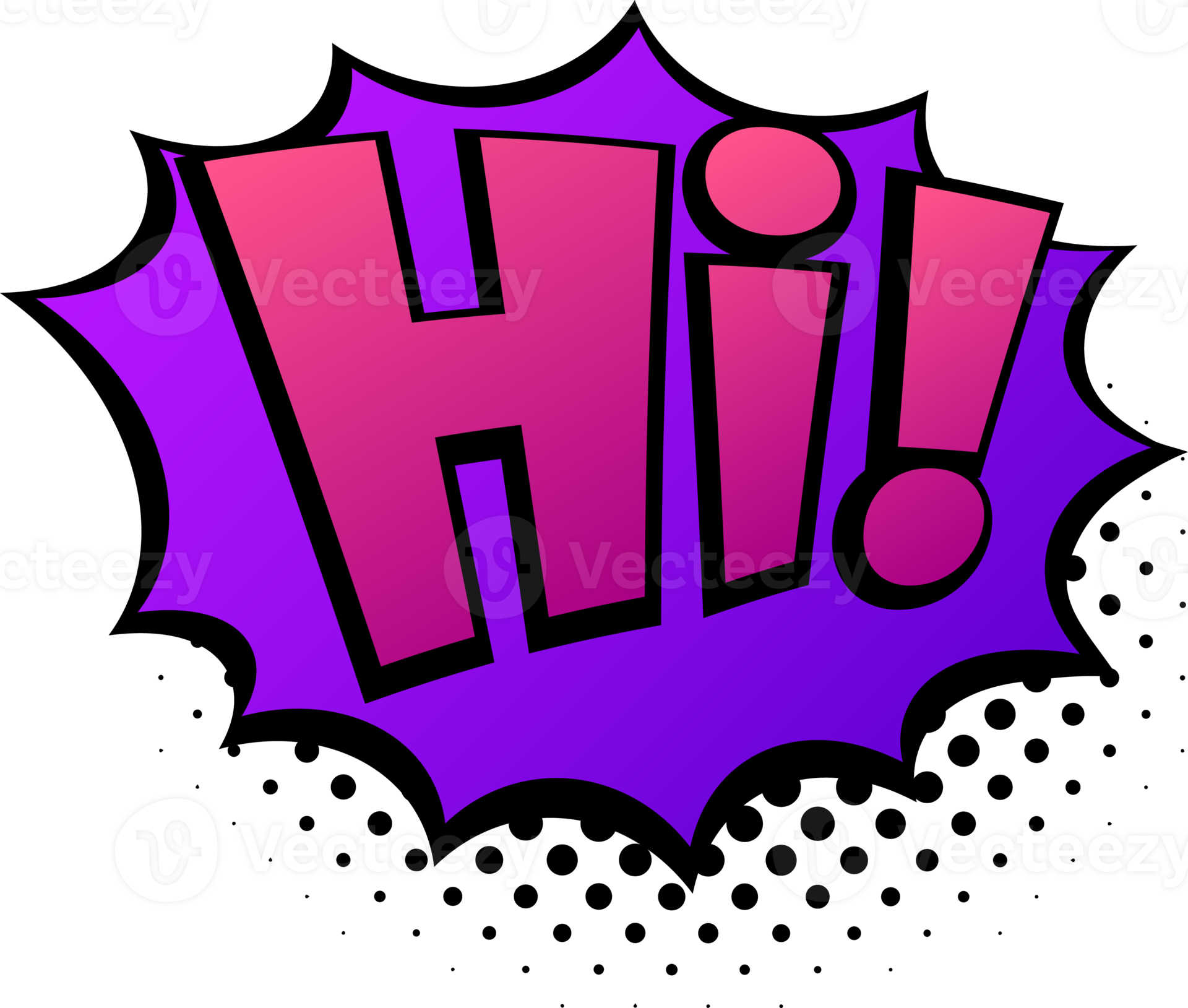 Comic lettering Hi Comic speech bubble with emotional text Hi Bright