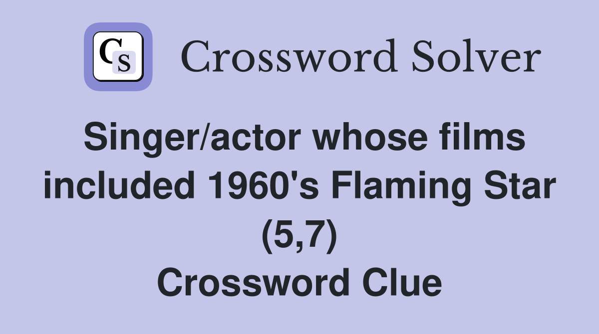 Singer/actor whose films included 1960 #39 s Flaming Star (5 7) Crossword
