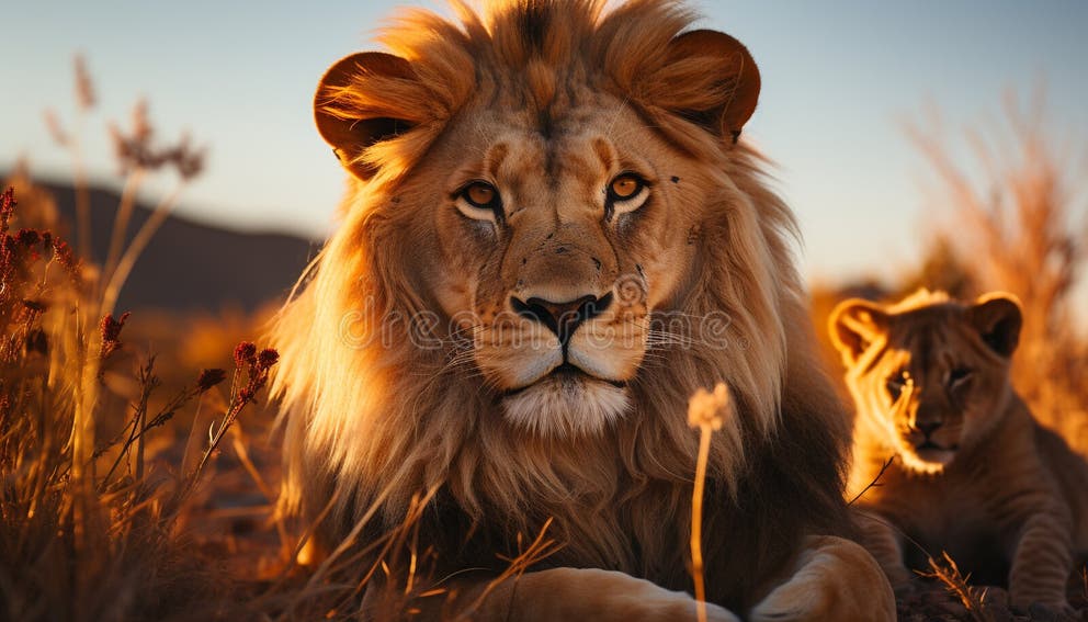 Premium AI Image Majestic lioness hides in plain sight gazing into