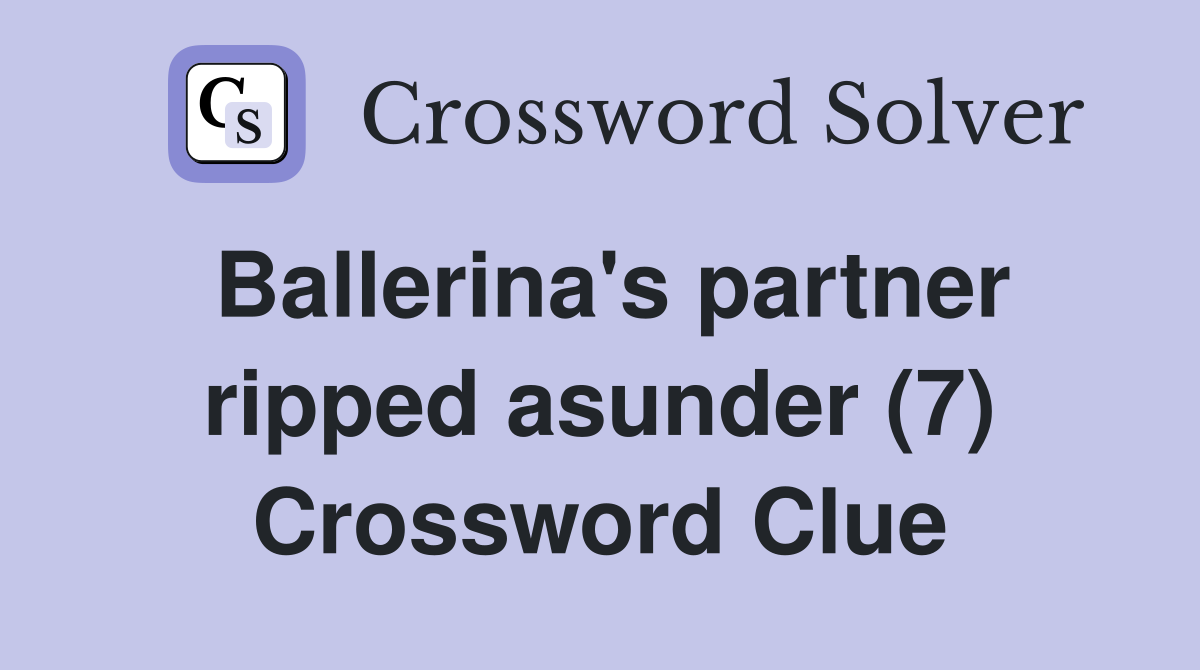 Ballerina s partner ripped asunder (7) Crossword Clue Answers