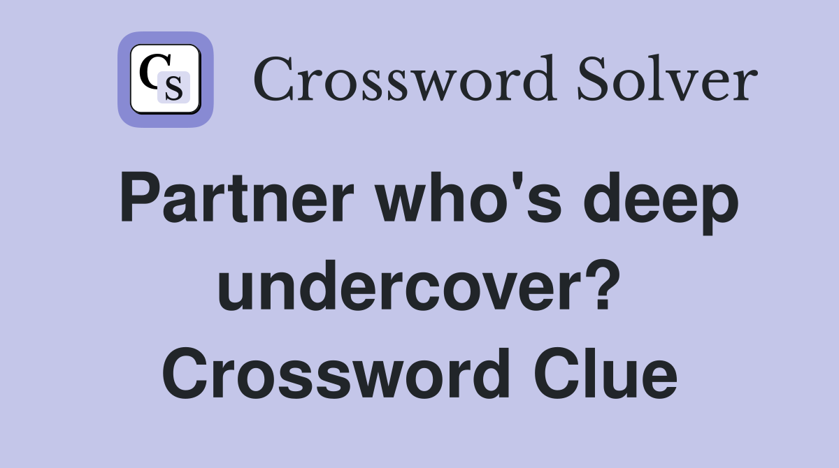 Partner who s deep undercover? Crossword Clue Answers Crossword Solver