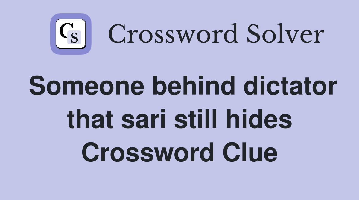 Someone behind dictator that sari still hides Crossword Clue Answers
