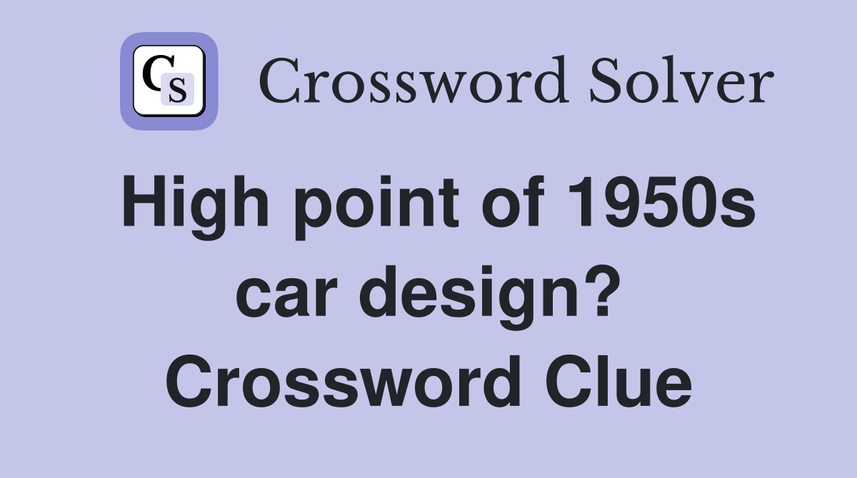High point of 1950s car design? Crossword Clue Answers Crossword Solver