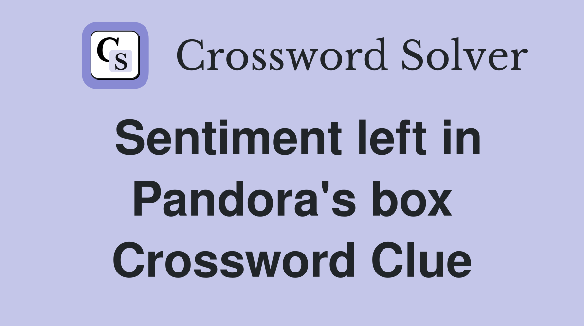 Sentiment left in Pandora #39 s box Crossword Clue Answers Crossword Solver