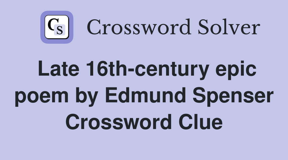 Late 16th century epic poem by Edmund Spenser Crossword Clue Answers