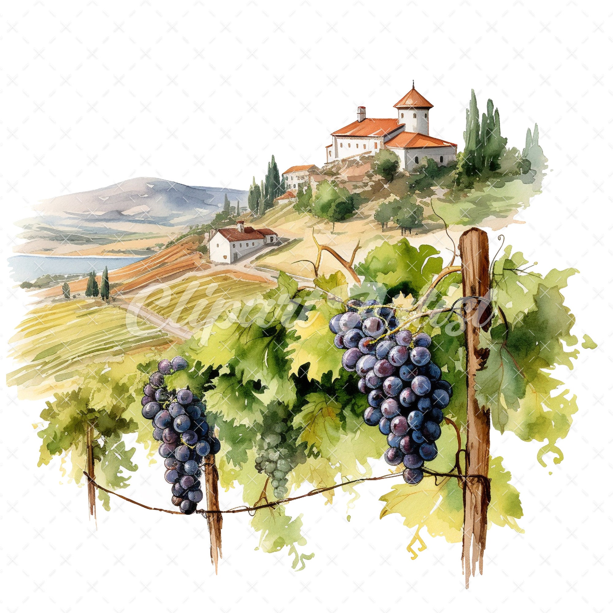 19 High quality Vineyard Clipart Vineyard Digital Watercolor JPG