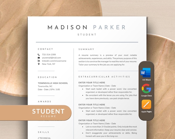 Student Resume Template Google Docs for Internship No Etsy Ireland
