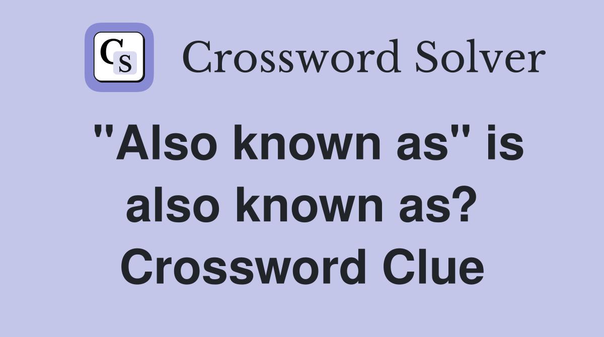 quot Also known as quot is also known as? Crossword Clue Answers Crossword