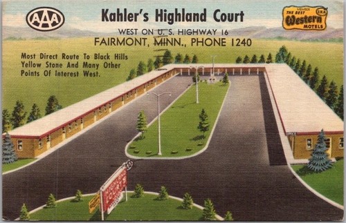 FAIRMONT Minnesota Postcard KAHLER #39 S HIGHLAND COURT Highway 16