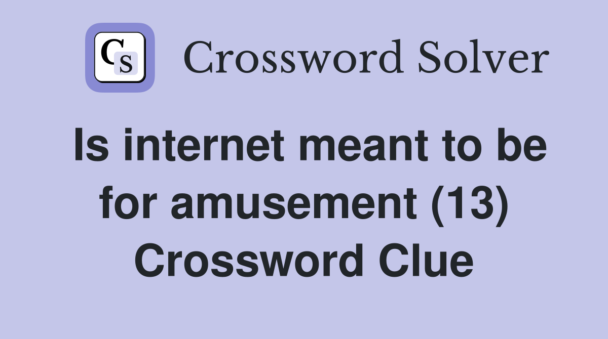 Is internet meant to be for amusement (13) Crossword Clue Answers