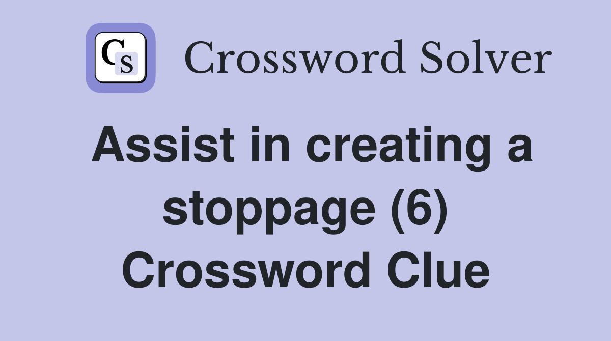 Assist in creating a stoppage (6) Crossword Clue Answers Crossword