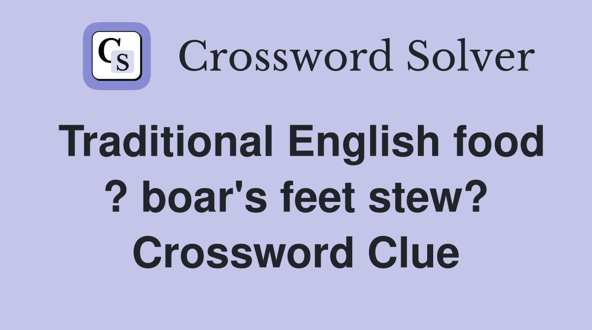 Traditional English food ? boar #39 s feet stew? Crossword Clue Answers
