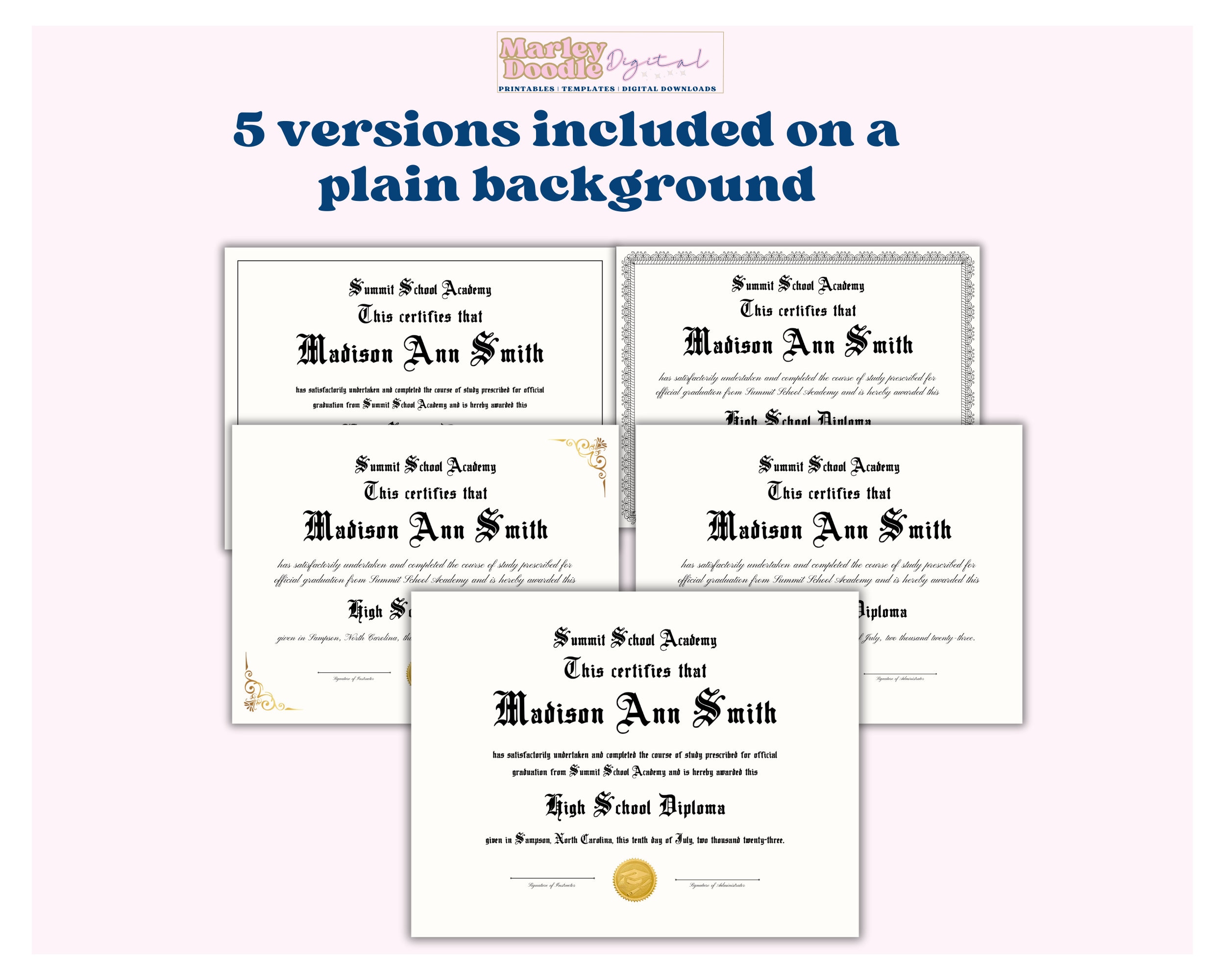 High School Diploma Template Printable Editable Homeschool Diploma