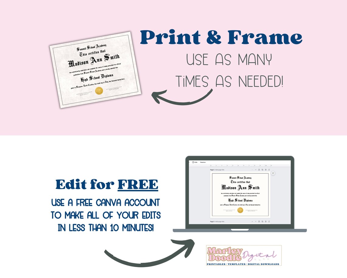 Printable High School Diploma Template: Customizable Replica (instant