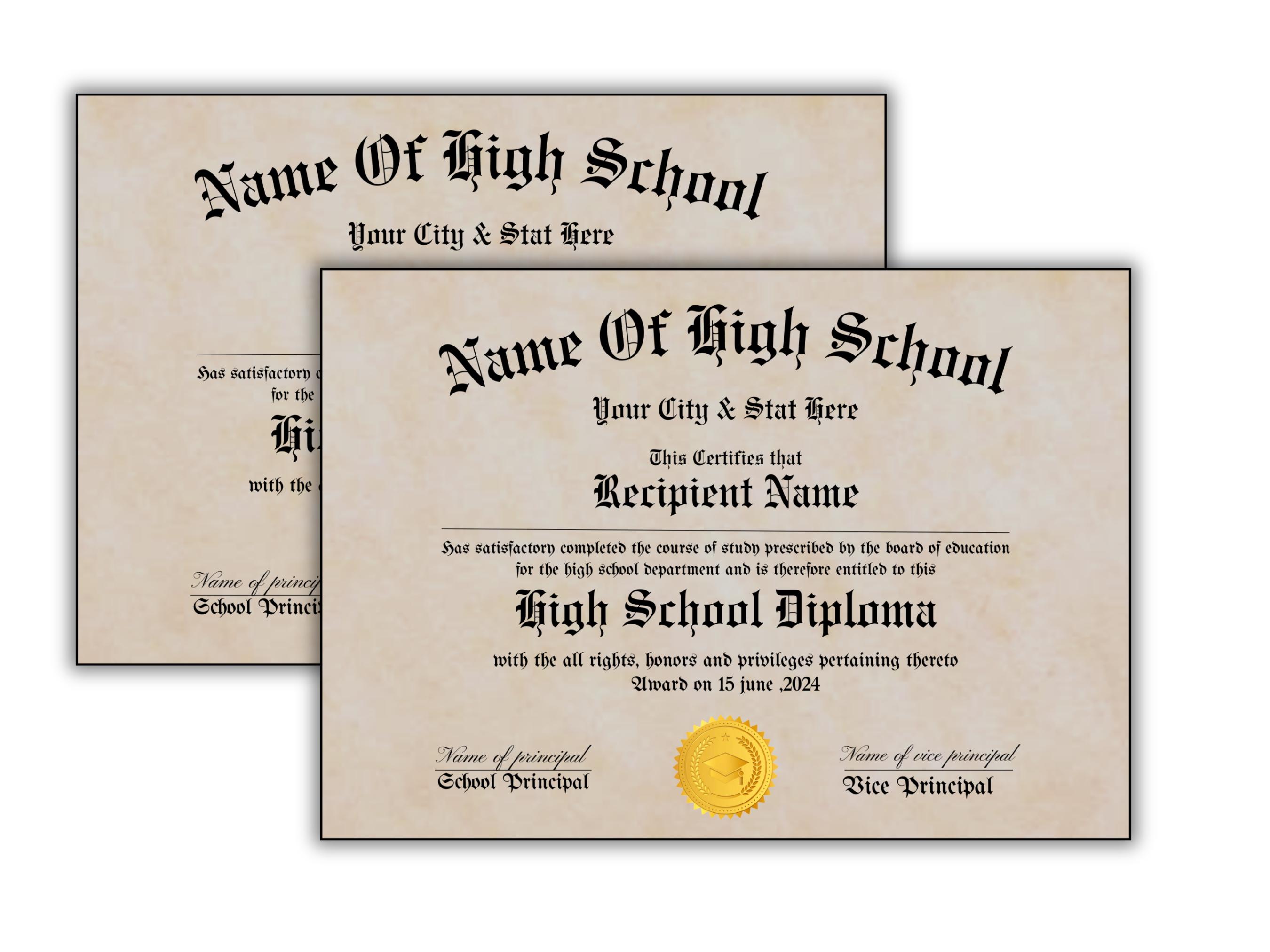 Printable High School Diploma Template: Customizable Replica (digital