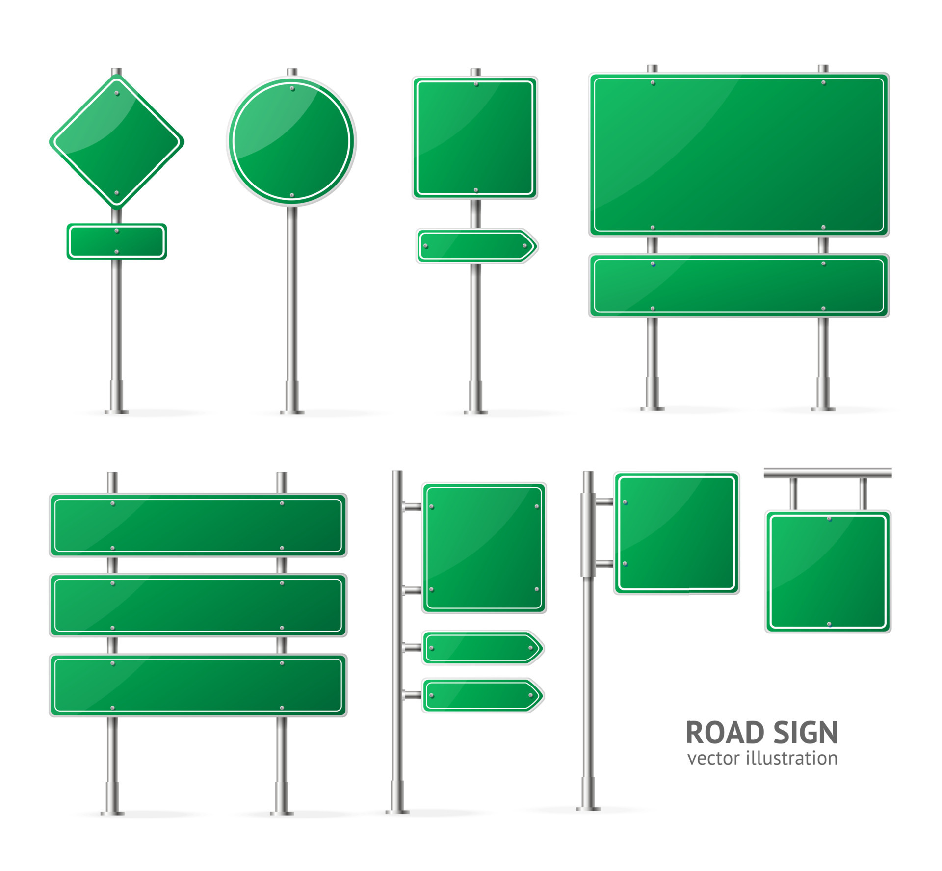 Road signs blank icons Vector green plate road signs templates Stock