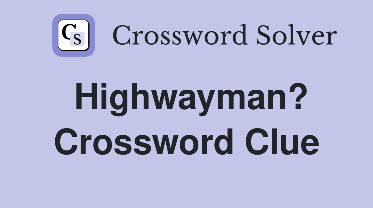 Here are some of the images for Highwayman Poet Crossword Clue that we found in our website database.