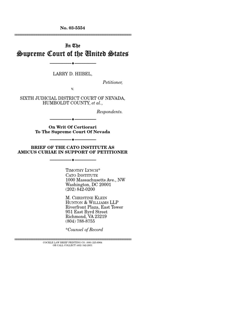 Hiibel v Sixth Judicial District Court Of Nevada Cato Institute