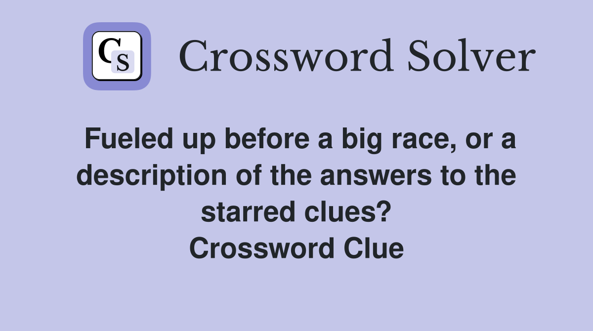 Fueled up before a big race or a description of the answers to the