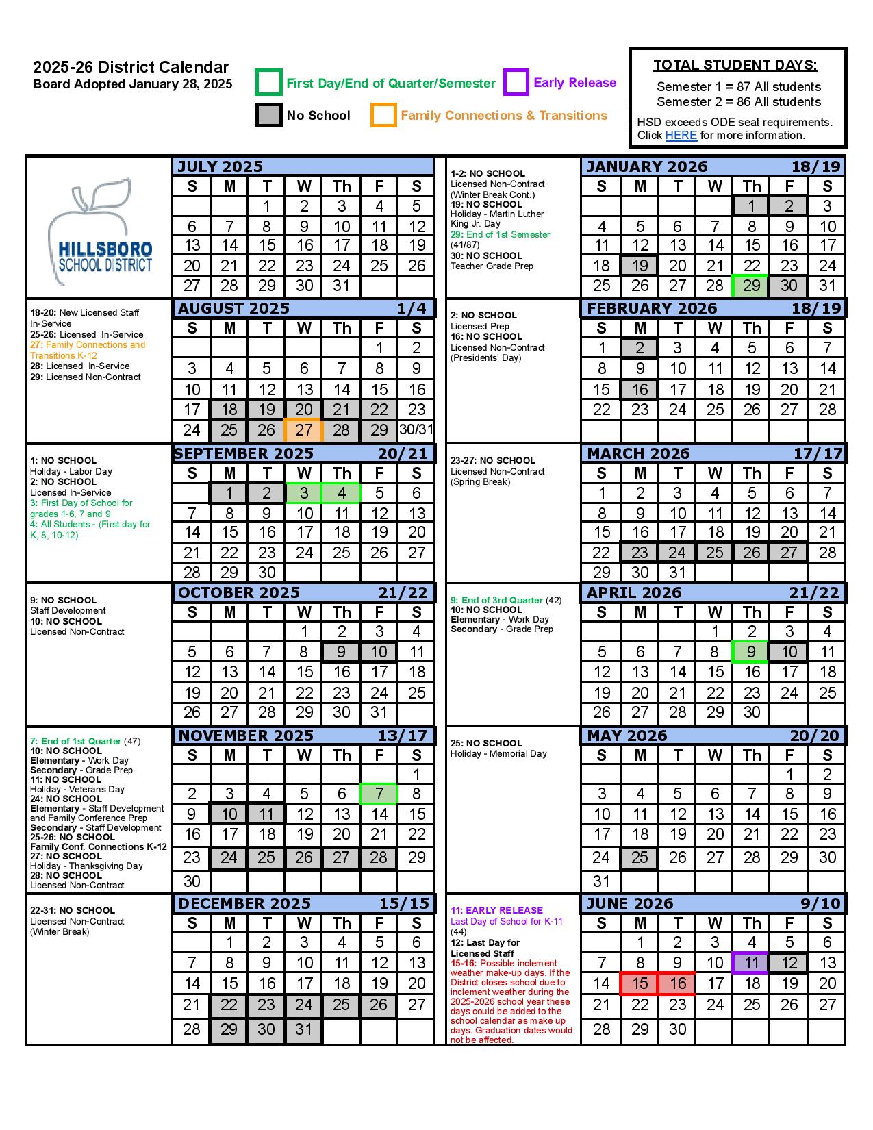 Hillsboro School District Calendar 2025 2026 Holidays