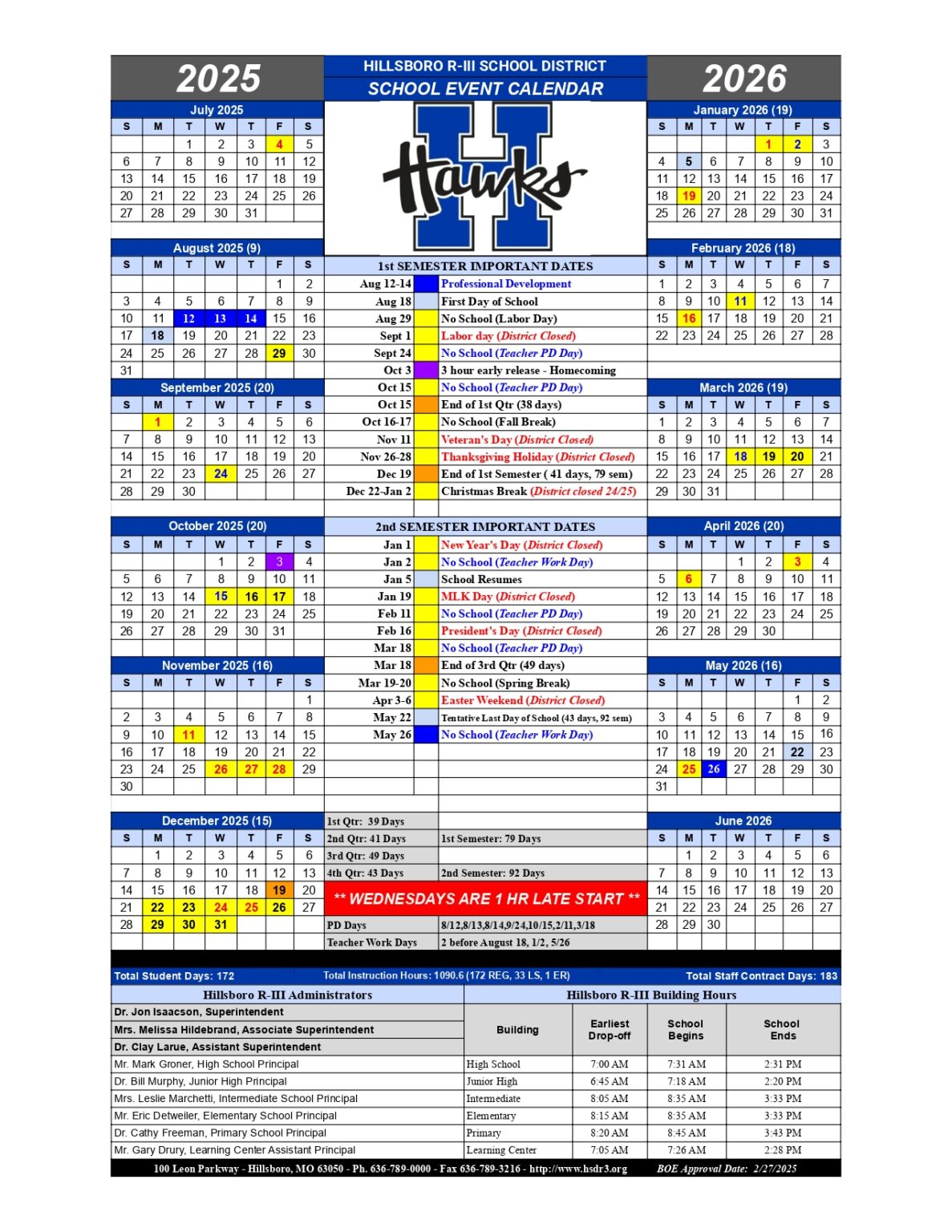 Hillsboro R 3 School District Calendar 25 26 Revised PDF EduCounty
