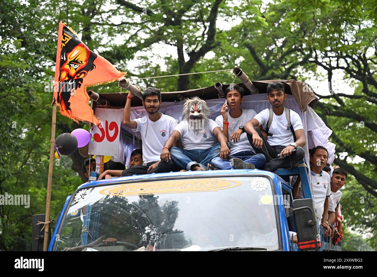 Hindu devotees parade as they take part in the celebrations of