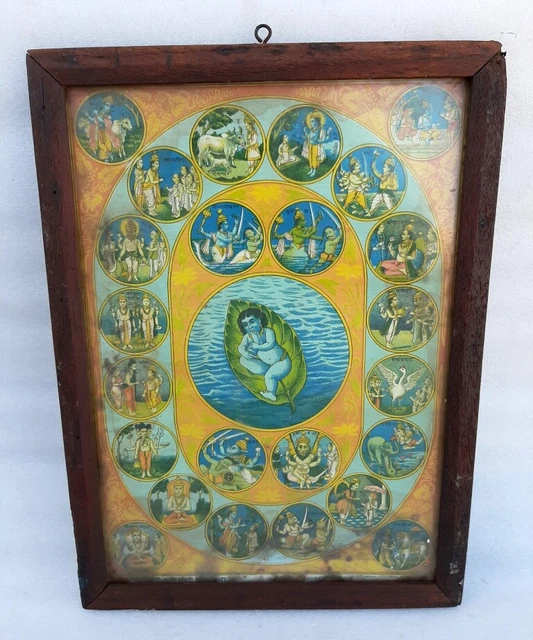 VINTAGE ORIGINAL OLD Hindu God Vishnu Dashavatara Incarnation Litho