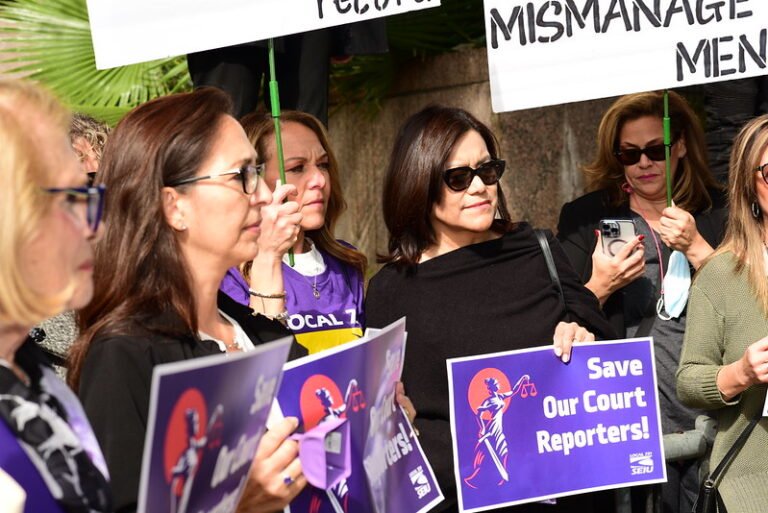 LA Superior Court Reporters rally for jobs at Stanley Mosk Courthouse