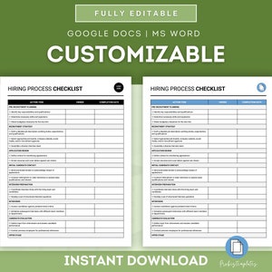 Hiring Process Checklist Template Employee Recruitment Etsy