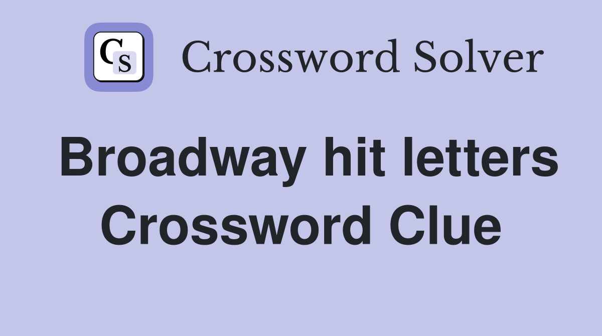 Broadway hit letters Crossword Clue Answers Crossword Solver