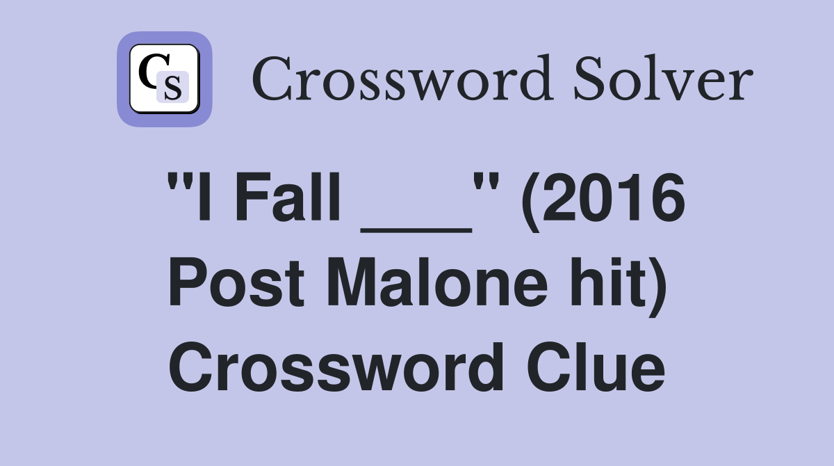 quot I Fall quot (2016 Post Malone hit) Crossword Clue Answers