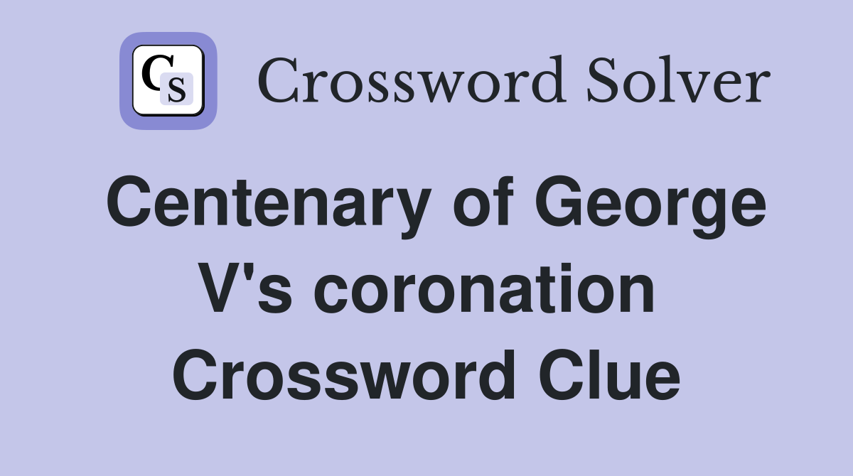 Centenary of George V #39 s coronation Crossword Clue Answers Crossword