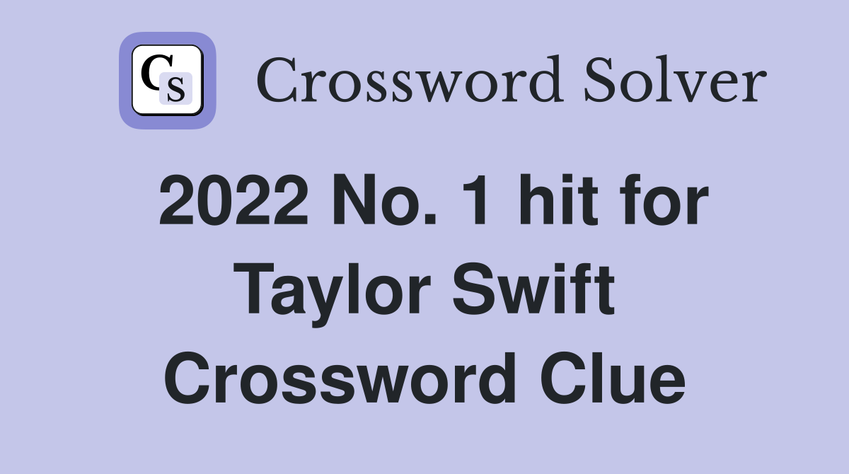 2022 No 1 hit for Taylor Swift Crossword Clue Answers Crossword Solver