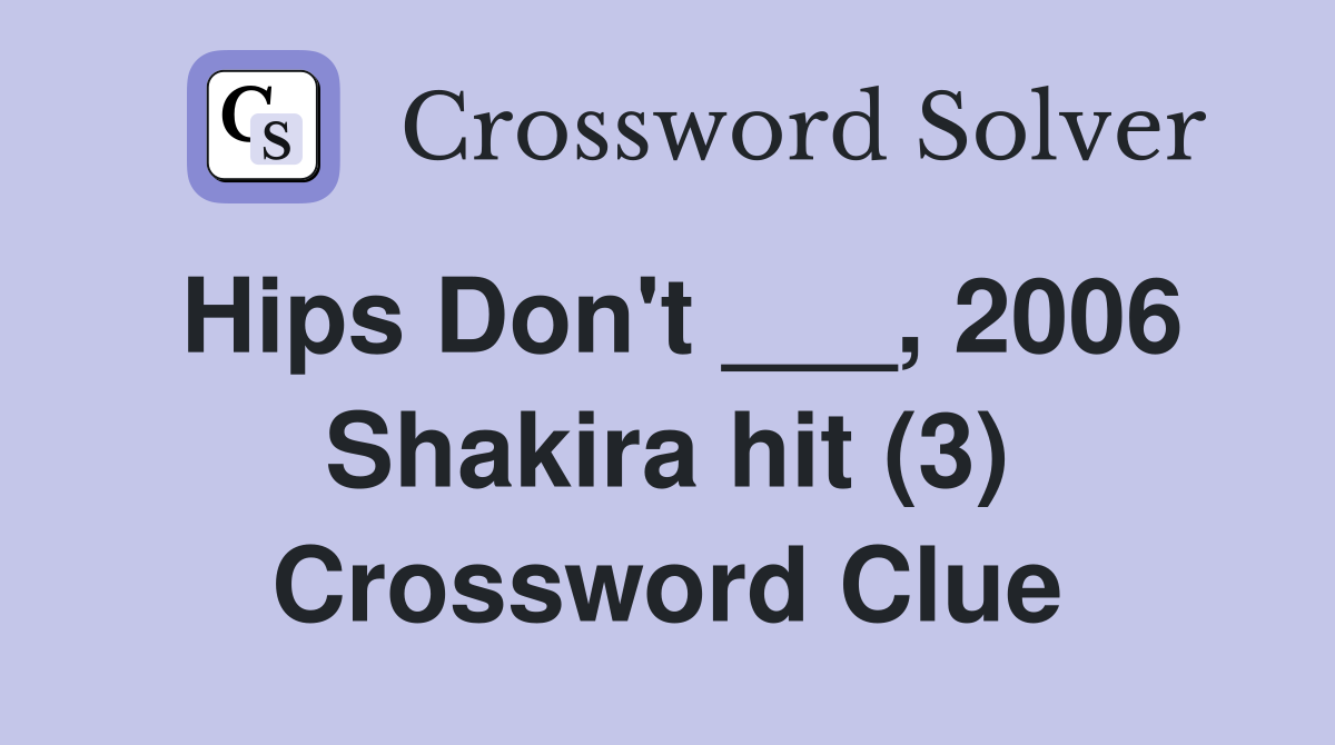 Hips Don #39 t 2006 Shakira hit (3) Crossword Clue Answers