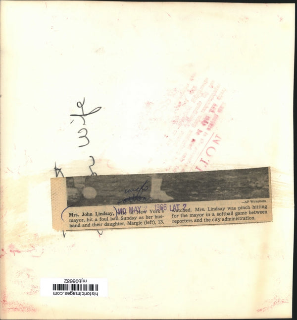 1966 Press Photo Mrs Lindsay Hits Foul Ball During Administration
