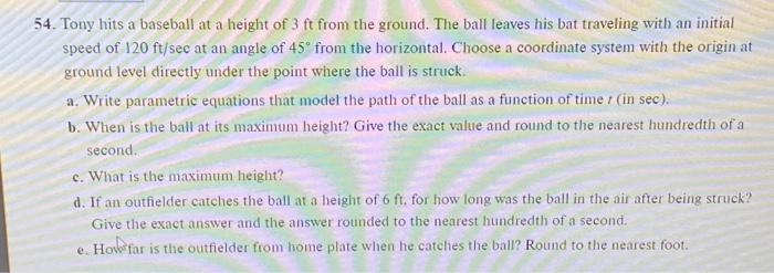 54 Tony hits a baseball at a height of 3ft from the Chegg com