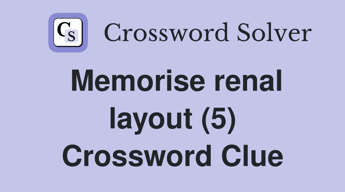 Memorise renal layout (5) Crossword Clue Answers Crossword Solver