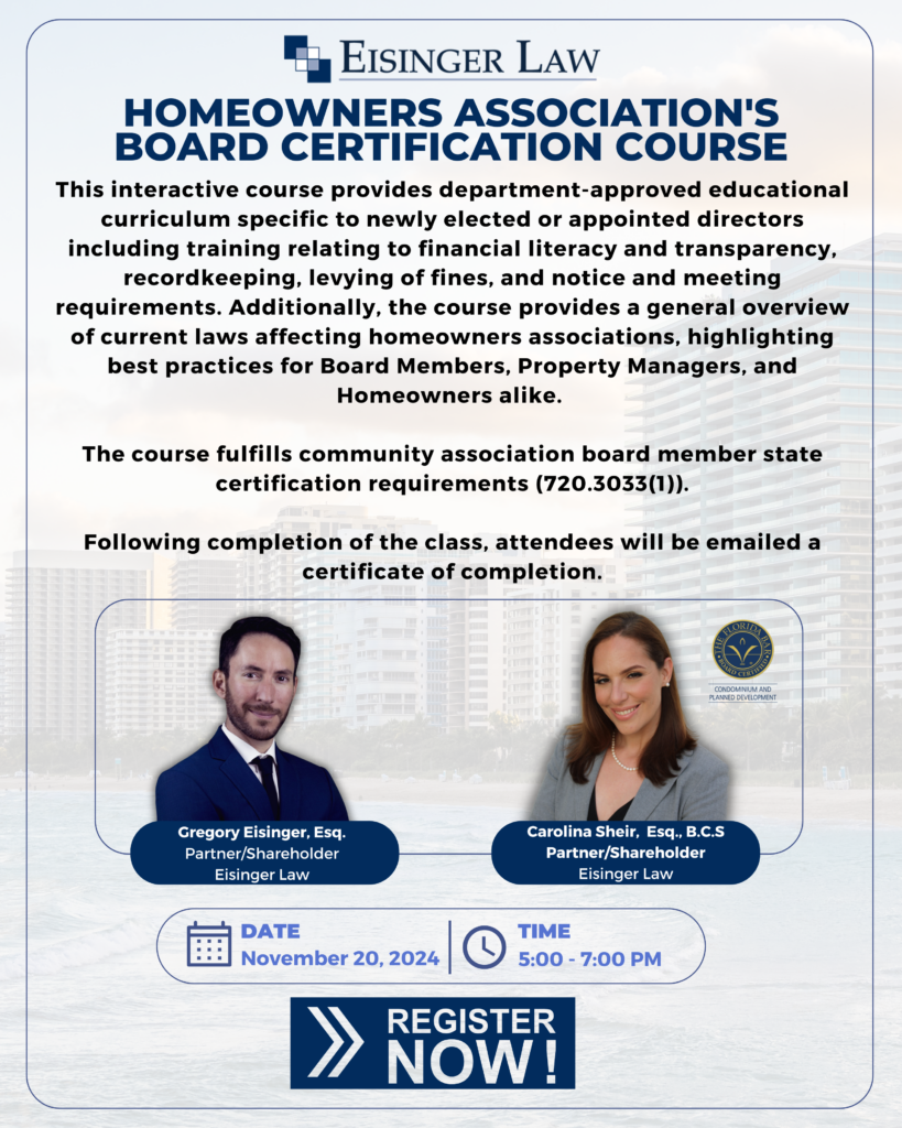 HOA Board Certification Course November 20 2024 Eisinger Law