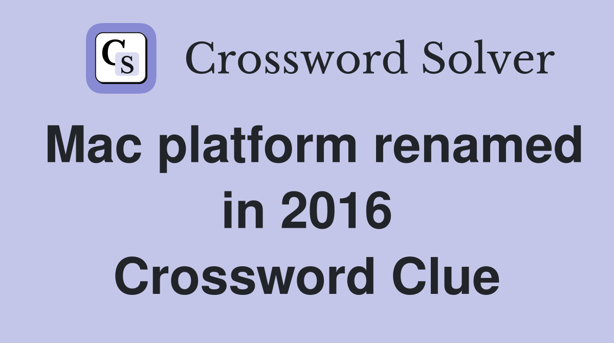 Mac platform renamed in 2016 Crossword Clue Answers Crossword Solver