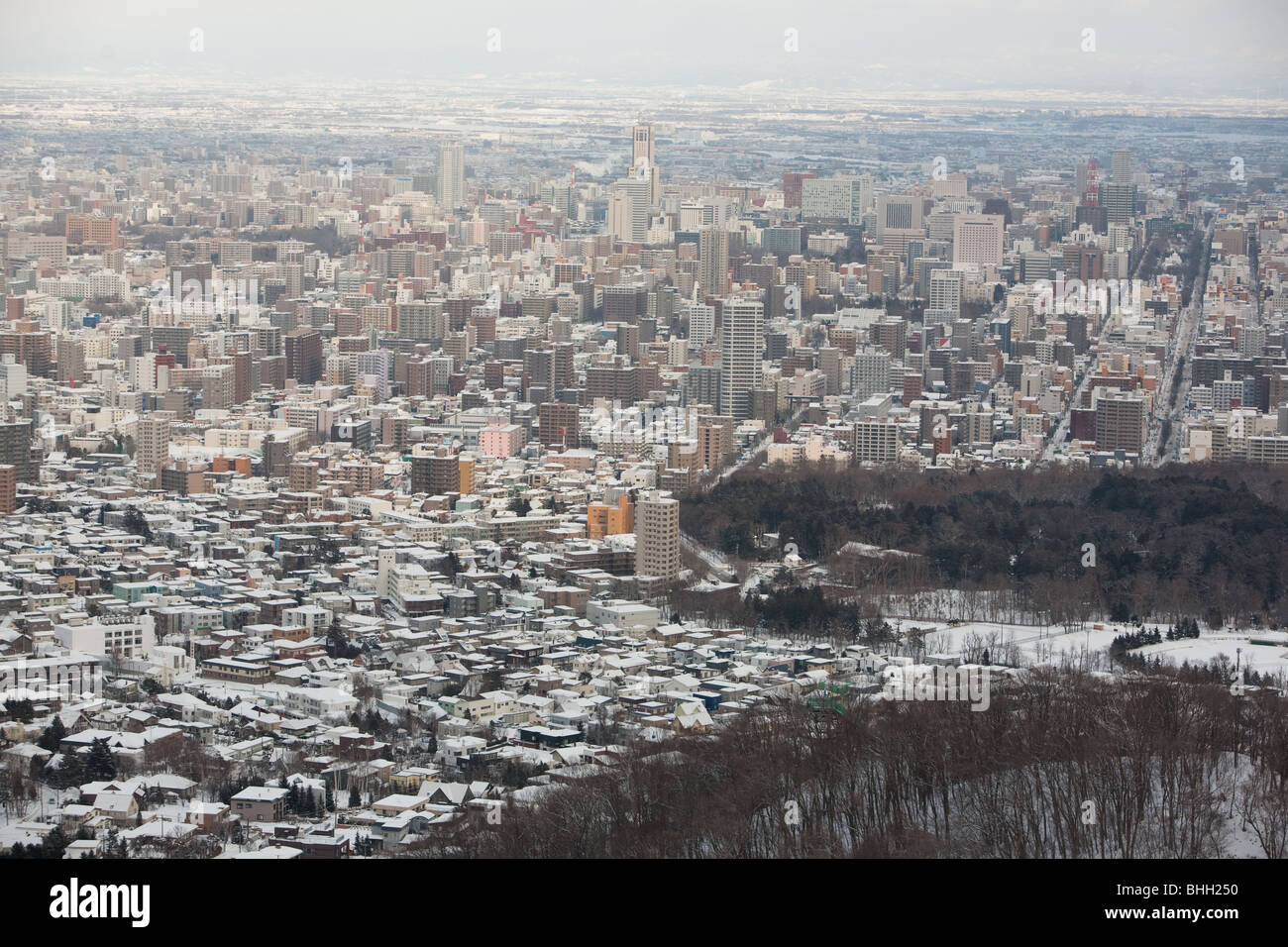 Sapporo Japan cityscape from Asahiyama Memorial Park in winter Stock