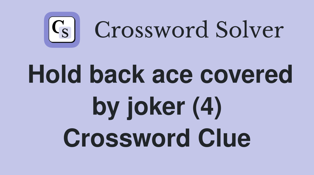 Hold back ace covered by joker (4) Crossword Clue Answers Crossword