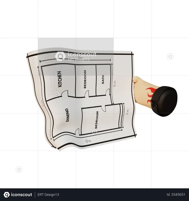 Hand holding floor plan 3D Illustration download in PNG OBJ or Blend