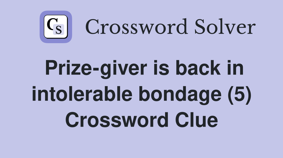 Prize giver is back in intolerable(5) Crossword Clue Answers