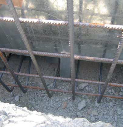 Closeup of Vertical Reinforcement in Retaining Walls Stock Photo