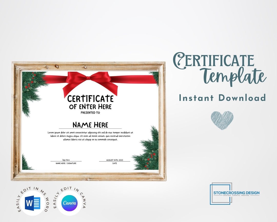 Editable Holiday Certificate Template Printable Christmas Etsy