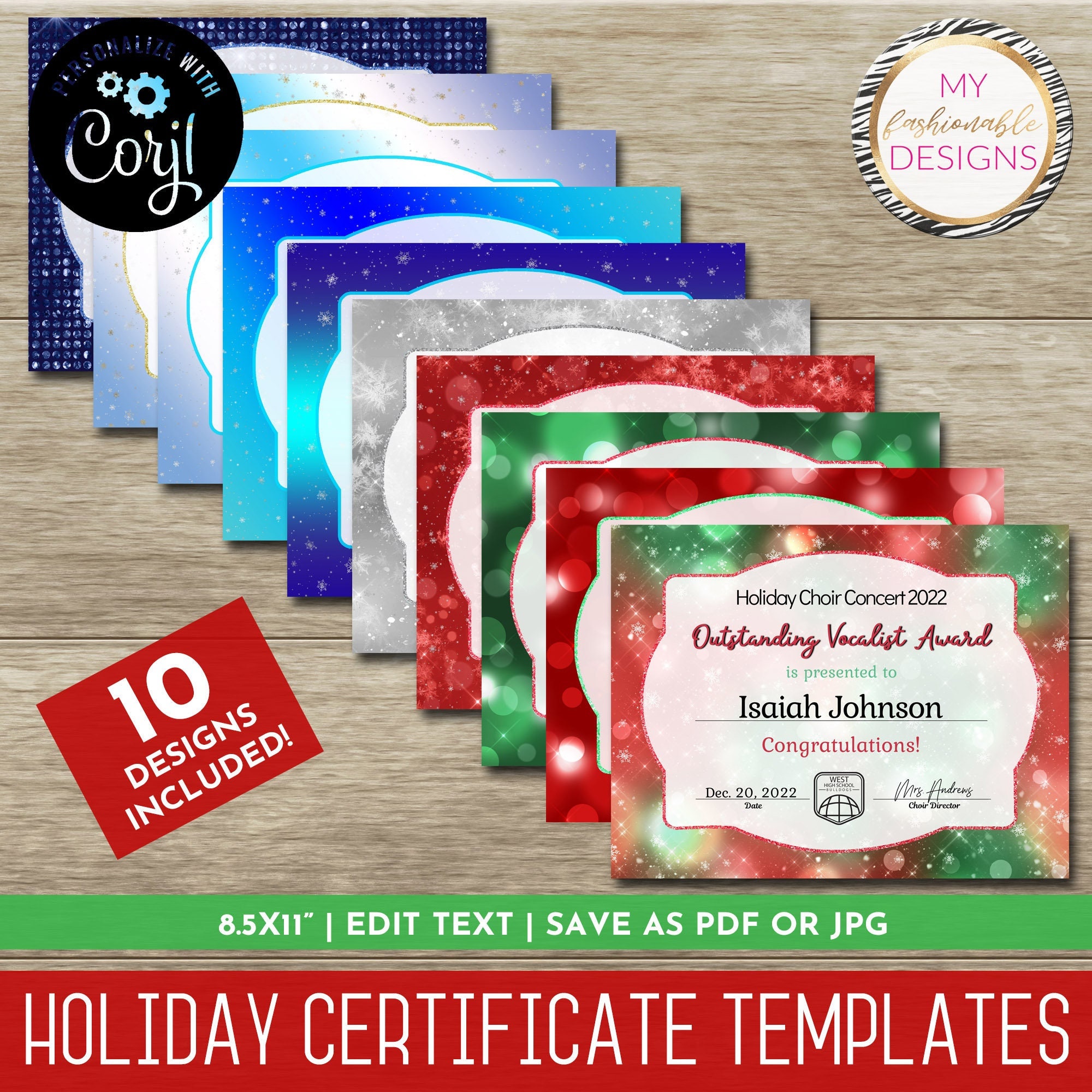 Holiday Certificate Template Set 12 Design Templates 8 5x11 Save as JPG
