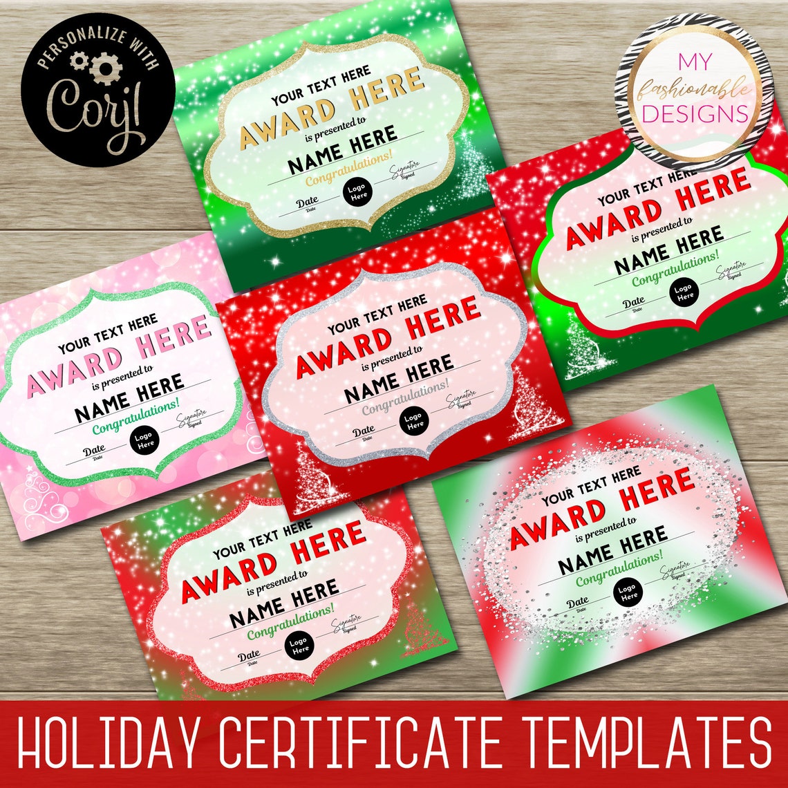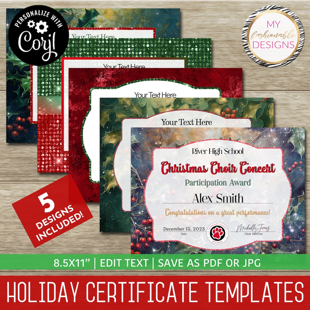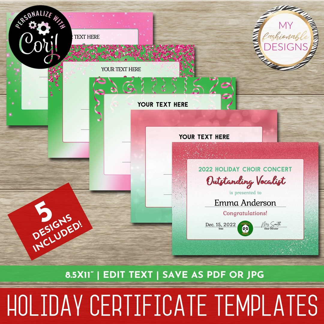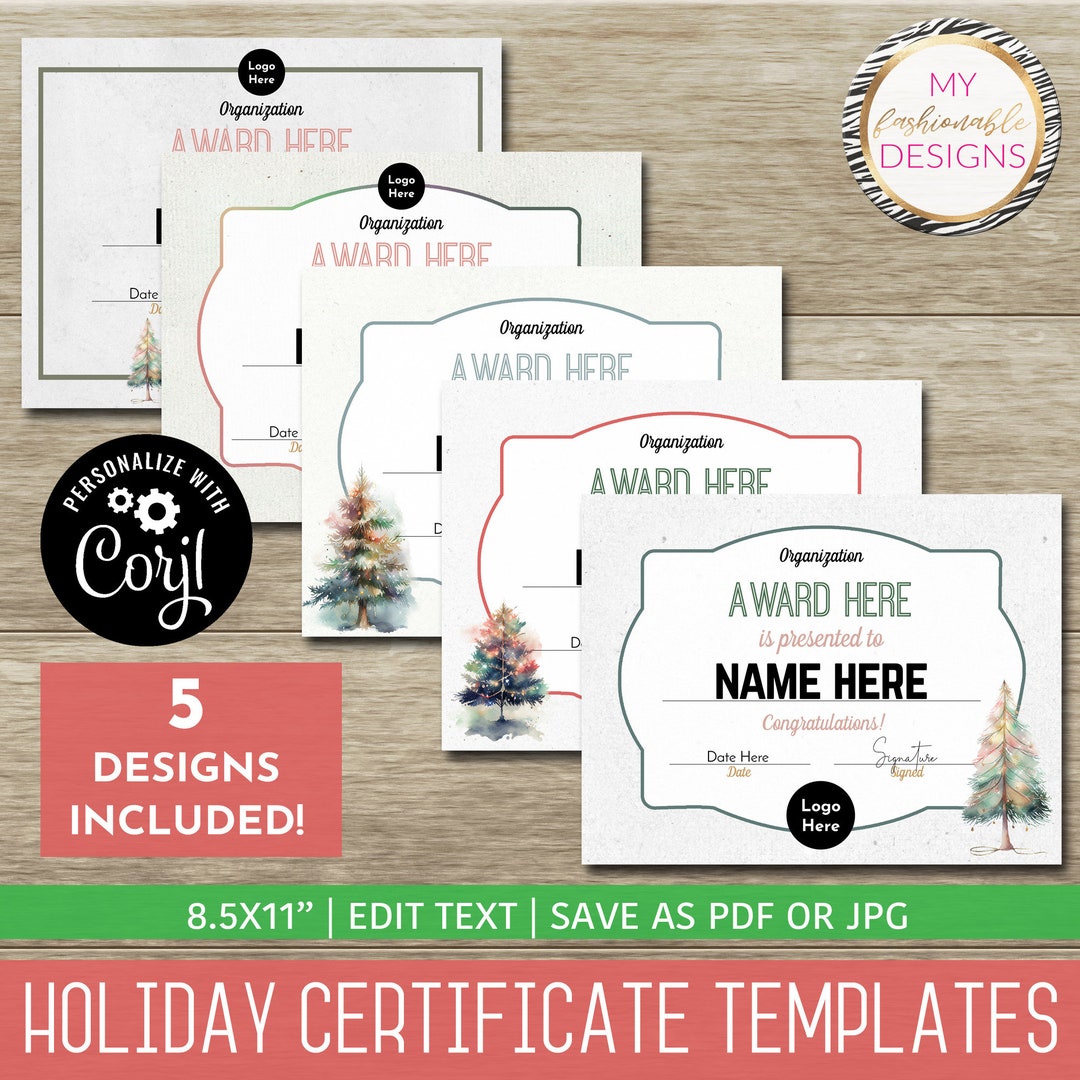Holiday Certificate Template Set 5 Design Templates Etsy