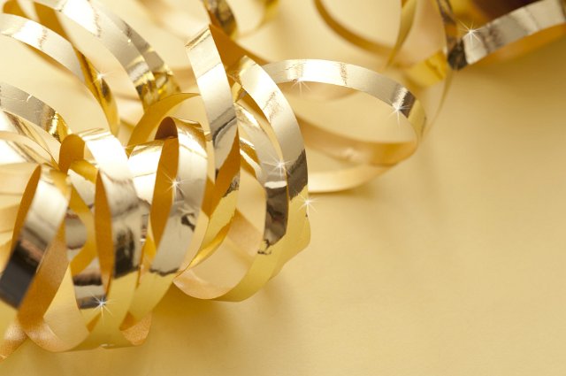Coiled metallic gold ribbons for a celebration Free backgrounds and