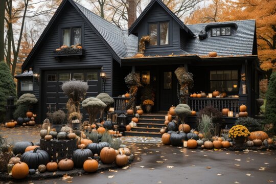 Premium Photo Old scary house decorated with pumpkins for Halloween